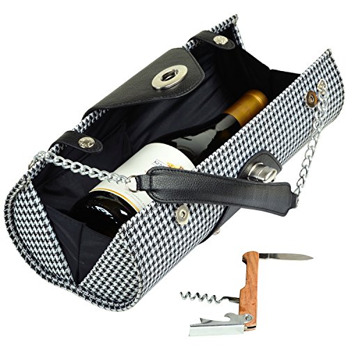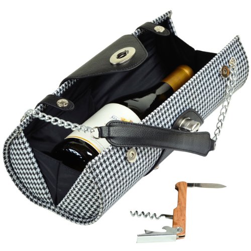 Studio : PICNIC AT ASCOT Publisher : PICNIC AT ASCOT Binding : Toy Product Description The fashion-forward Wine Carrier and Purse by Picnic at Ascot is covered in houndstooth fabric with trendy metal and faux leather accents. The attractive hardsided case features a padded interior with fashionable lining and a small inside pocket to neatly carry the included corkscrew. High end design details and construction make this an excellent accessory for any occasion. Assembly level/degree of difficulty: No Assembly Required. 0