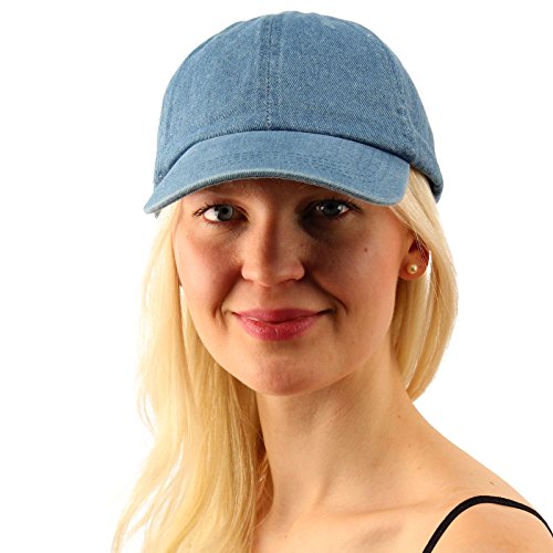 -. Feature : Fabrication: 100% Cotton Denim / Size: Ladies and Teens - One size fits most w/ Adjustable hook&loop back / Head measurement: 56 cm, 22", Size 7 ~ 59 cm, 23-1/4", Size 7-3/8 / Brim: 2-3/4" Height: 5" / Occasion: Everyday blank plain front with verbiage on back adjustable hat. Perfect for a day in sun, visor peak bill for UV protection from the sun. Bad hair day, perfect key hole for your pony tail, hitting the clubs, dance recital, dance performance, dance battle, stage acting, walking, jogging, exercise, gym, school, ball games, school, college campus, all outdoor activities for sun protection for all 4 seasons. Will compliment any outfit.