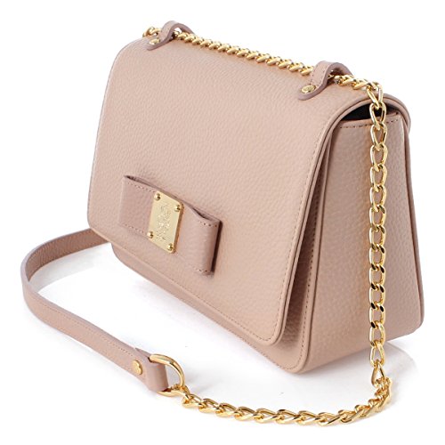Feature : Size : Please refer to the Product Description below to check the Size Info / Material : Body-wet type artificial leather (Premium Polyurethane), trimming, handle, strap, decoration-natural cow leather. Lining-emblem pattern jacquard / Details : Elegant Chain Bag / Accented Ribbon Design / Classy and Stylish look / Mini Bag / Leather / Country of Origin : South Korea / The color displayed may vary depending on your screen. / The size may differ by 0.2-0.4 inches depending on measurement methods.