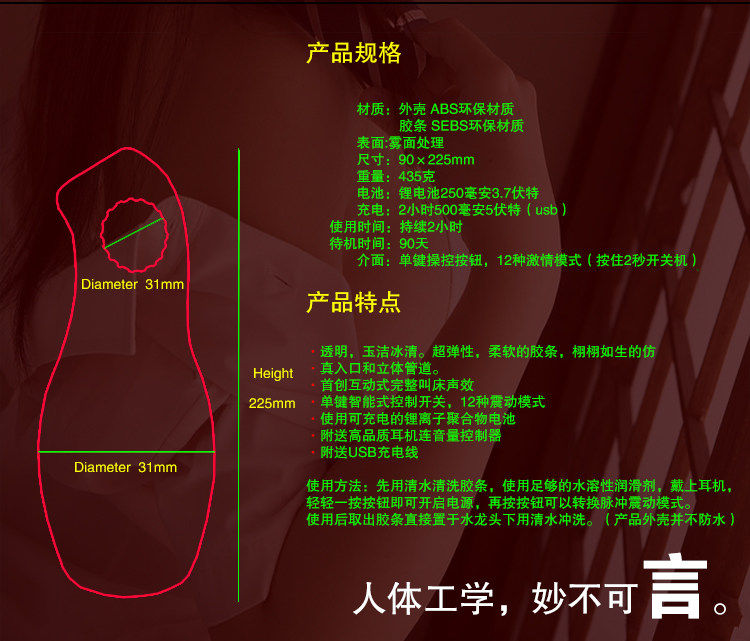 * Comes with ginseng extract water-soluble lubricant , make you full-powered , full of strength