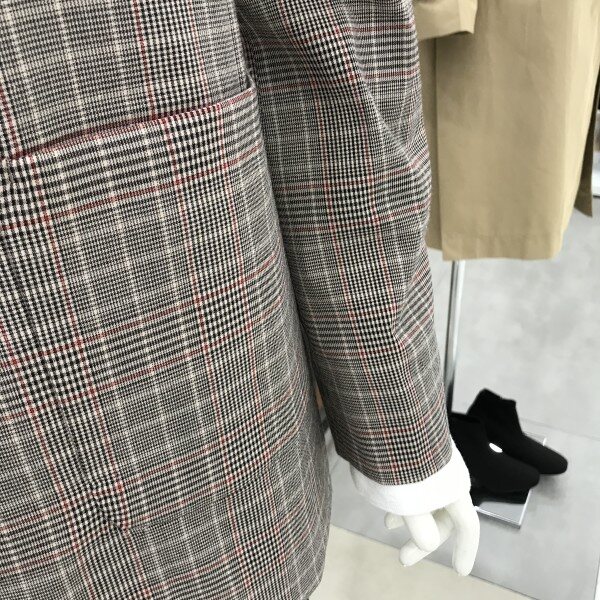 레드와 브라운체크로 화사하고 캐쥬얼하게입기좋아요기장이랑 핏이 적당해서 편하게입기좋아요얇은두꺼감으로요즘입기 딱좋아요