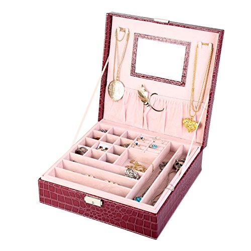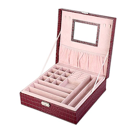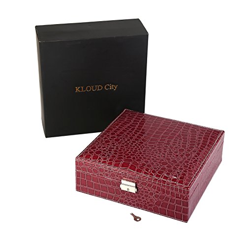 KLOUD City jewelry box organizer display storage case with lock-PU Leather (Red)
