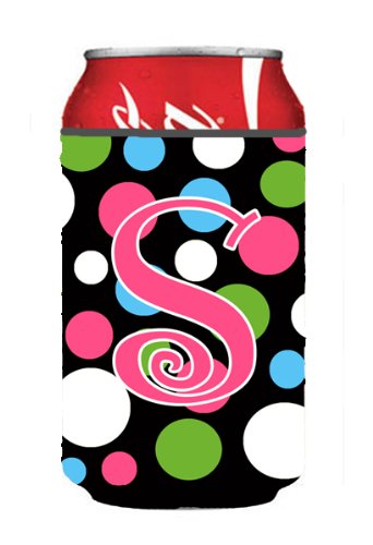 Letter S Initial Monogram - Polkadots and Pink Can or Bottle Beverage Insulator Hugger