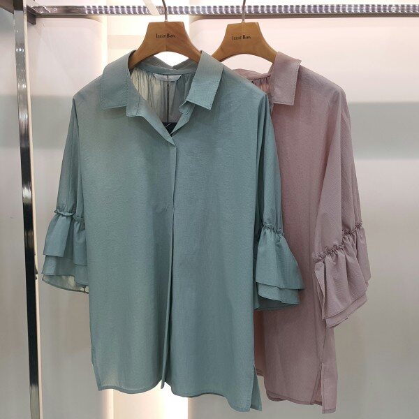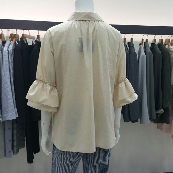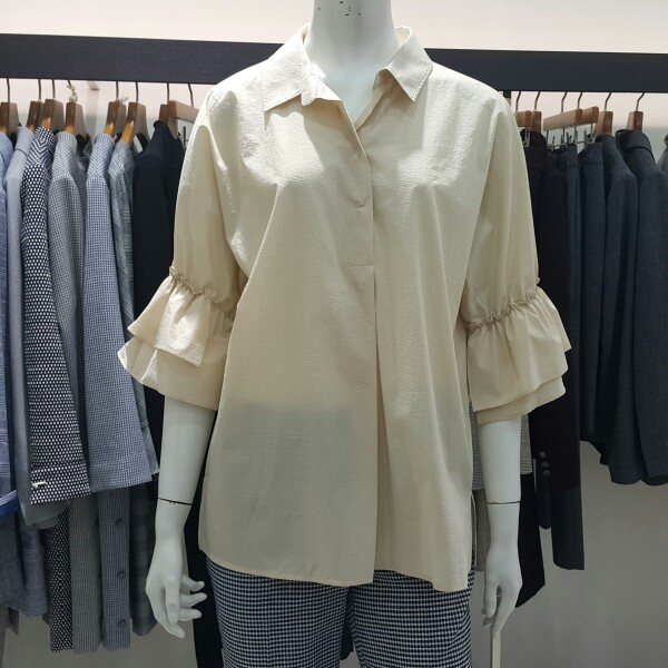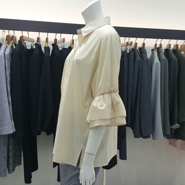 셔츠형 소매부분 셔링블라우스입니다여성스러우며 루즈핏으로세련된 디자인입니다다양한 아이템으로 연출해 보세요~