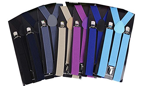 This suspender fit for men and women.These polyester adjustable suspender are very durable and can be hand washed or machine washed on a gentle cycle and lay flat to dry. The suspenders are a 1 inch wide and 45 inches long, adjustable stretch elastic with Y-Back design. They are crafted with an easy to open metal clip-on closure. They are perfect for weddings, parties, birthdays, etc.Welcome to our MENDENG store, we are a specialty retailers for men's neckwear and other men accessories. We have been designing, producing, and retailing men's ties,handkerchiefs,bowties,cravat online.