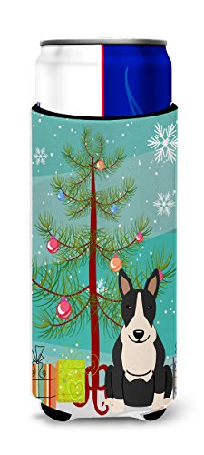 Caroline's Treasures BB4258MUK Merry Christmas Tree Bull Terrier Black White Michelob Ultra Hugger for Slim Cans, Multicolor