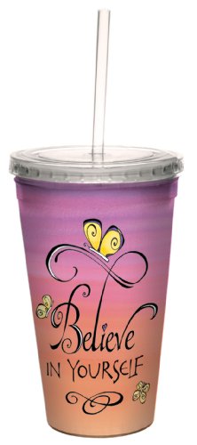 Tree-Free Greetings cc33965 Believe in Yourself by Joanne Fink Artful Traveler Double-Walled Cool Cup with Reusable Straw, 16-Ounce