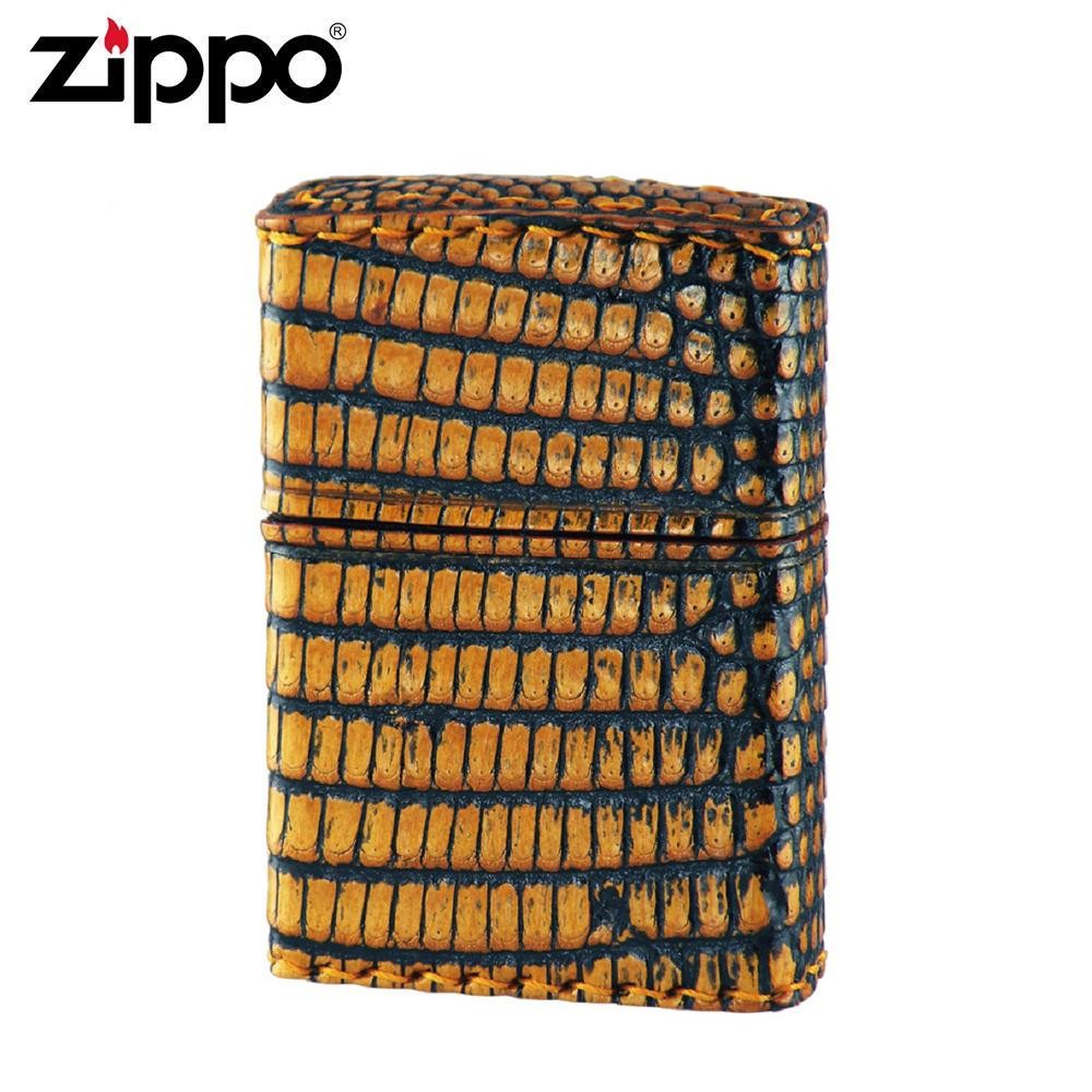 | ウロコ模様は腹部が大きめ、脇腹に向かうほど粒が小さくなるリザード革を巻いたZippo(ジッポー)。天然素材のため、ひとつひとつ模様の出方が異なり、使い込むほどに変化する風合いをお楽しみいただけます。 |