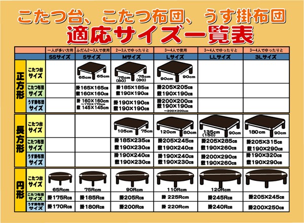 75~90cm角のこたつ台に適応