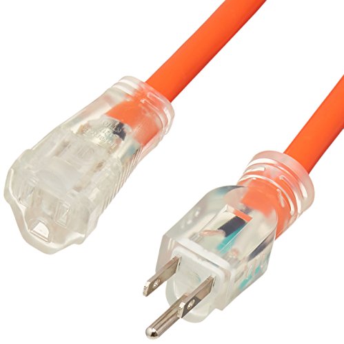 AmazonBasics 12/3 SJTW Heavy-Duty Lighted Extension Cord - 100 Feet (Orange)