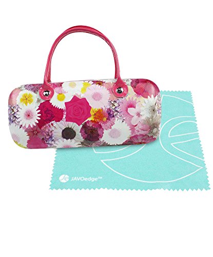| JAVOedge Handbag Style Hard Eyeglasses Case and Bonus Free Soft Microfiber Lens Cleaning Cloth |