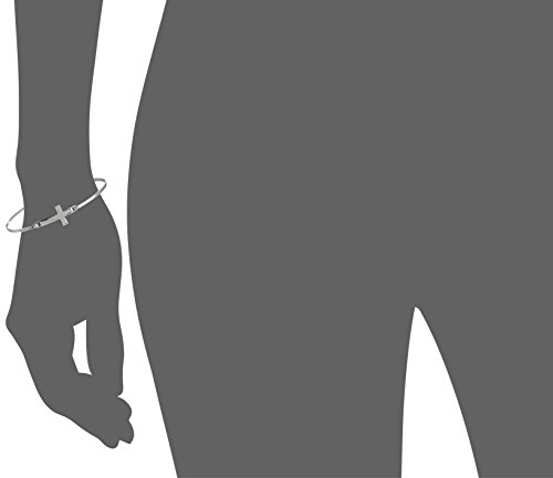 Slender sterling silver bangle bracelet featuring sideways cross and inner engraving "Faith Hope Love"