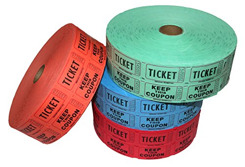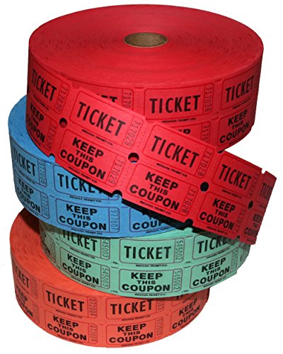 - Two rolls of 2000 in each roll of raffle tickets, colors will vary.