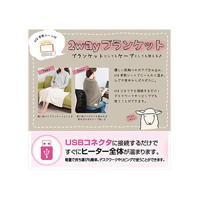 원본상품명:山善(YAMAZEN) USB熱シト付 2WAY ブランケット 肩掛け/ひざ掛け (60×85cm) クリミホワイト YHK-UB60(CW)