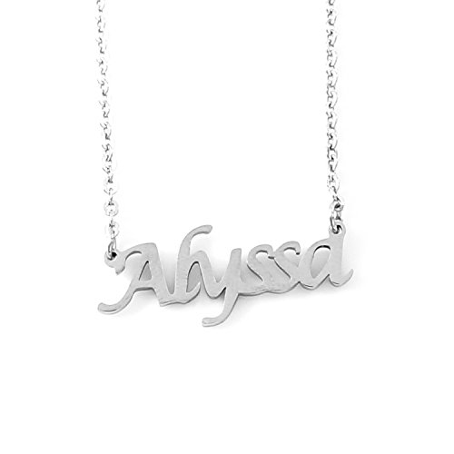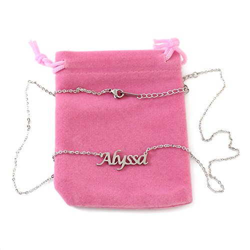 A beautiful stainless steel name necklace perfect as a gift for Anniversary, Birthday, Thank You, Wedding, Engagement or any other special occasion. The necklace has an adjustable chain ranging from 16" to 19" in length, with a weight of between 8 - 10g.