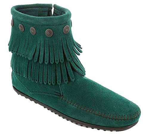 Striking fringe detail offers bold tribal influence for lasting appeal. Cozy textile linings keep you warm in cold weather. Metal-tone ornamentation at the ankle adds a subtle touch of style. Convenient side zipper to ensure that you get in/out of this boot in record time. Lightweight rubber outsole with tread detailing for sure footing.