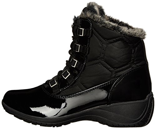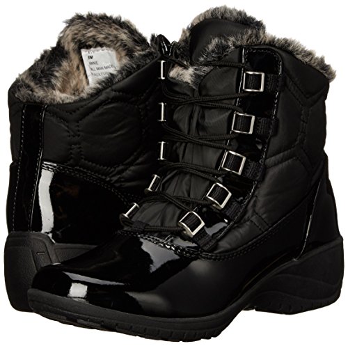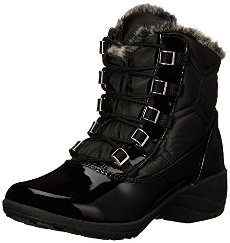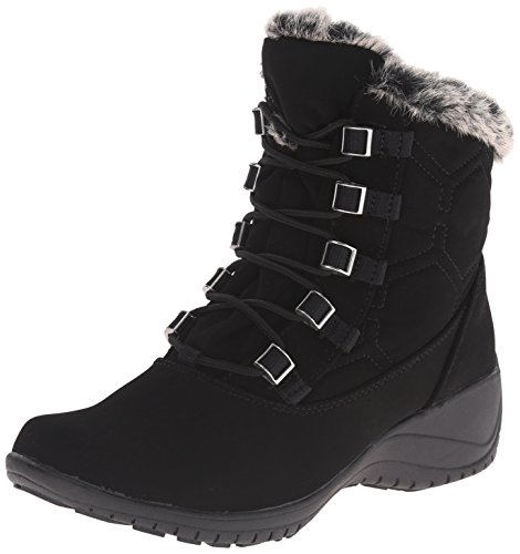Beat the cold with Khombus Annie Winter Boot This stylish boot soars comfortably over ice cold cobblestones and slushy concrete in temperatures as low as 20 deg F The faux fur lining K Guard trade barrier and 200g of Thermolite trade insulation keep you cozy in cold and stormy conditions Whether its Apres ski or just walking the dog youll stay stylish and warm in the Khombu Annie Boots Supple PU shell material 200g Thermolite reg synthetic insulation will protect you from the cold to 20 deg Fahrenheit K Guard trade provides a barrier against the elements perfect for all weather conditions K Grip trade outsole is slip resistant for all terrain confidence Faux fur lining feels soft against skin Water resistant materials provide protection in light rain Lace closure for easily adjustable fit