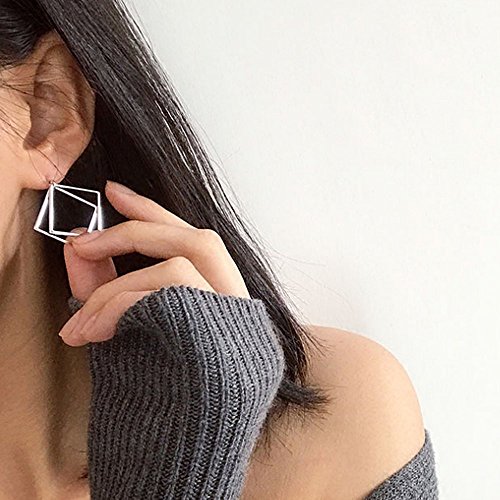 -. Title : A&C Fashion Korean Version Alloy Geometric Rectangle Shapes Earrings for Women. Unique Handmade Earrings Jewelry for Girl. (Silver Color)