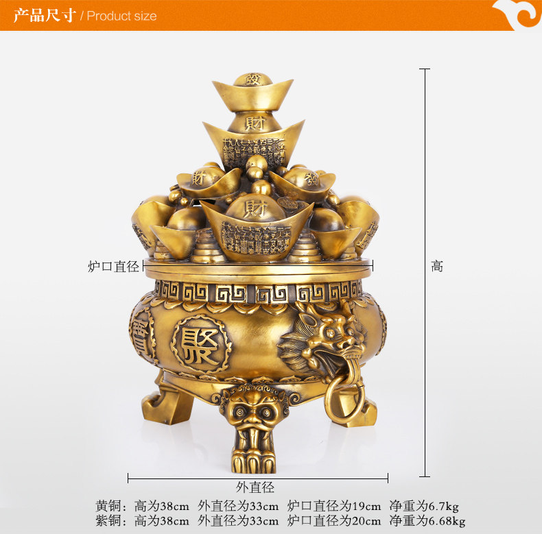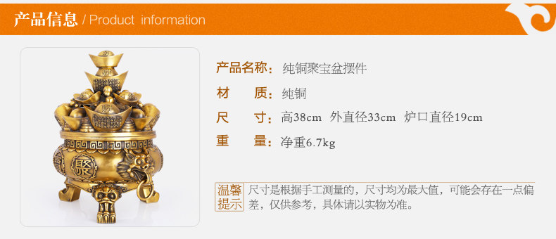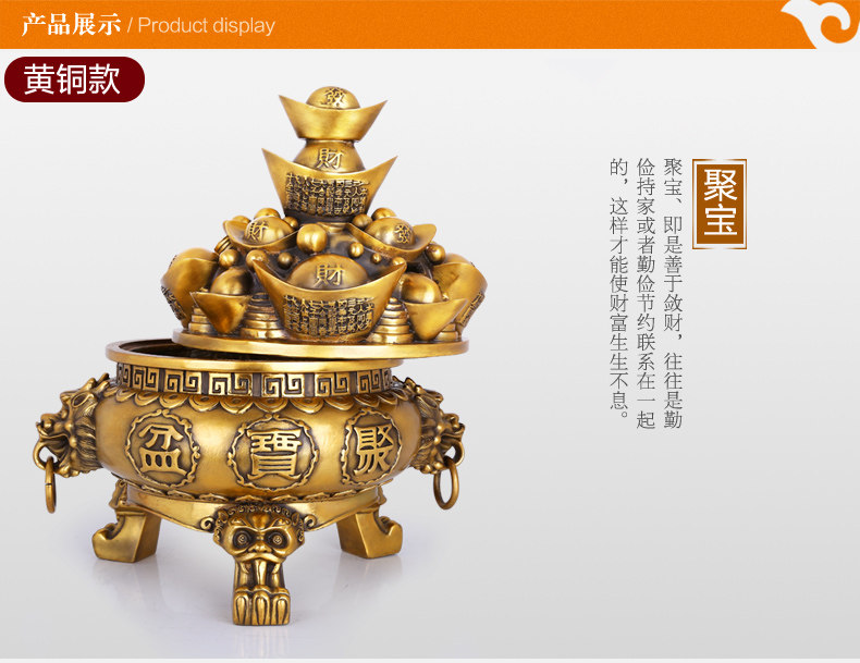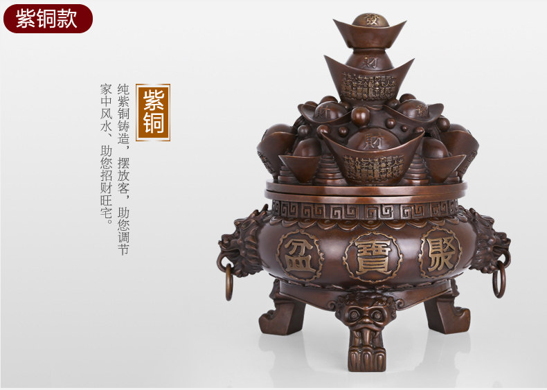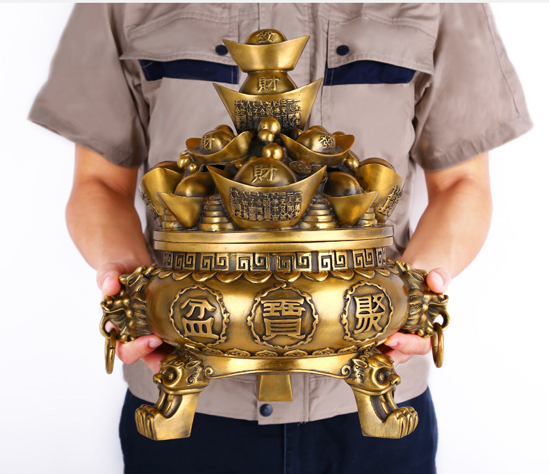 纯铜聚宝盆摆件 大号精工铜元宝聚宝盆风水装饰工艺品