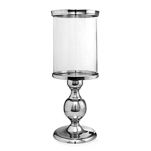 - This custom Made accessory to decorate your home is an aluminum large tall modern hurricane candleholder with glass shade and deco top metal ring