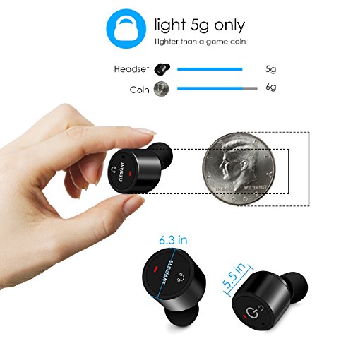 [Upgraded Version]Wireless Earbuds, ELEGIANT Stereo Bluetooth Earphones Mini In-ear Sport Headphones with Mic for iPhone 7/7Plus/6/6s/6Plus/iPad/SamsungS7/S6/Edge S5/Note 5/Sony/LG/PCs/Tablets Black