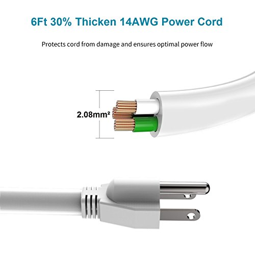 #x1F42C; The unit will shut down the power automatically when overloaded. Also protects the appliance while lightning flashes or surging occurs. 14AWG Power Cord:
