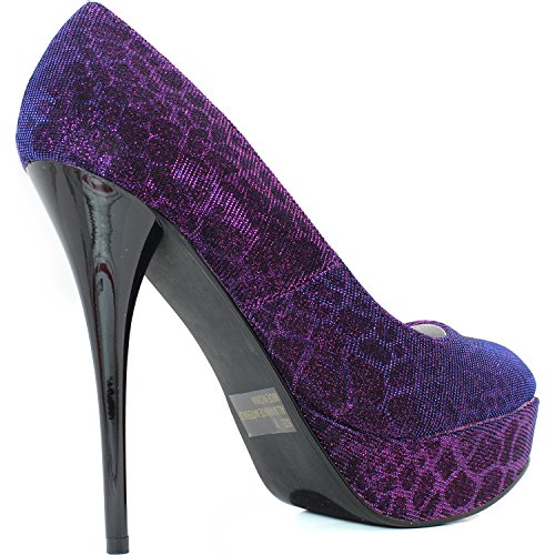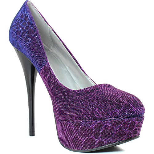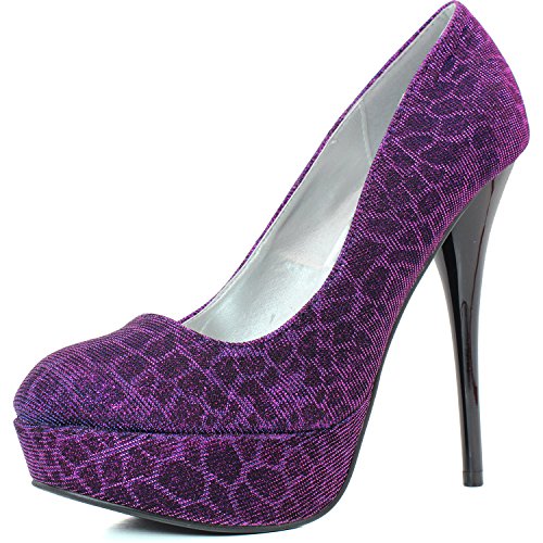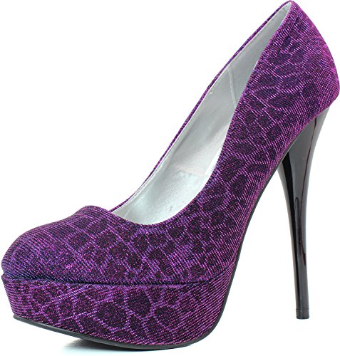 Women's Qupid Berry Fabric Leopard Glitter Stiletto High Heel Pumps (Neutral200)