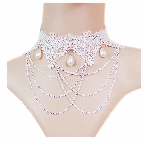 -. Feature : Quantity: 1pc Necklace / Necklace Size: About 12 inches (30cm) (with extended chain) / Material: Lace, Alloy / High Quality handmade lace Collar necklace jewelry for women / Anniversary,engagement,christmas,valentines day, Wedding, Party Jewelry Choice