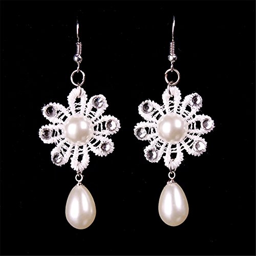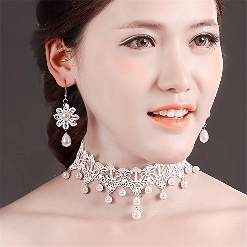-. Title : Lefinis Vintage Bridal Retro Girl Gothic Lolita Braided Flower White Lace Collar Choker Necklace Earrings Set