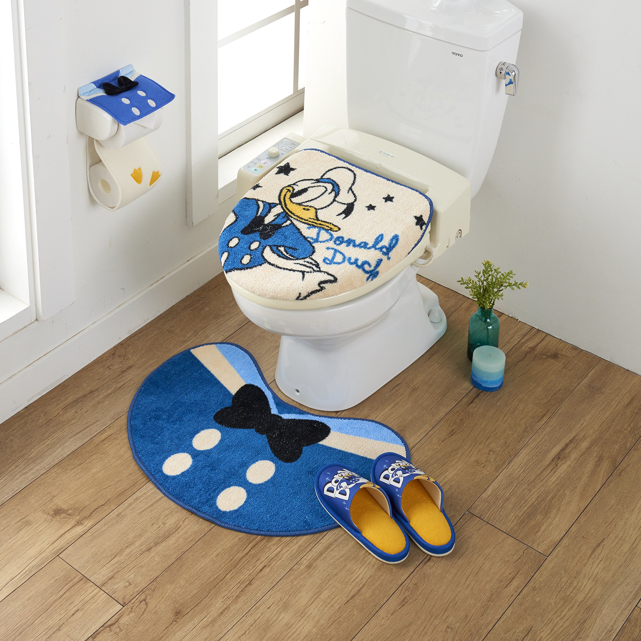 Disney character is a cute lavatory 4-piece set of cute toilet cover covers, mats, slippers and paper holder covers.