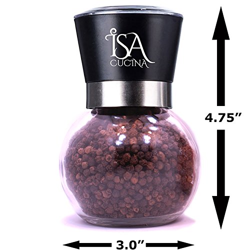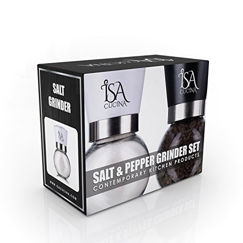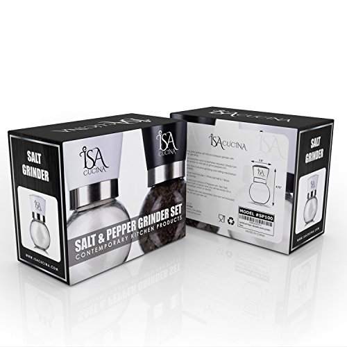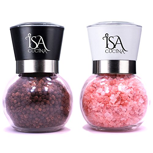 Salt Mill and Pepper Grinder Set, Beautiful glass globes with adjustable ceramic grinders