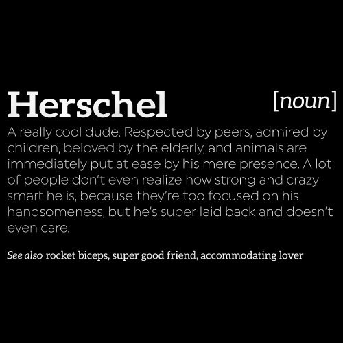 Finally - a tee shirt that gets it right about Herschel! If you find yourself constantly trying to enthusiastically describe how awesome he is to people who don't know him at parties, this is the shirt for you, super fan. Are you yourself Herschel? Oh my god, this is such an honor - you're, like, the greatest. You should get this shirt just in case you fall asleep at a party or something and people aren't able to see how funny and smart you are.Feature