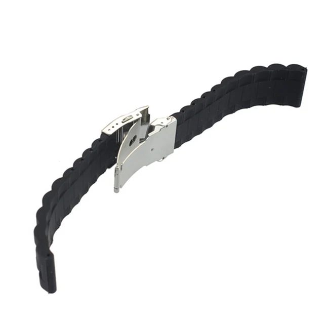 [해외]유니버설 22 미리메터 24 미리메터 블랙 실리콘 손목 남성 시계 스트랩 배포 버클 남여 시계 밴드 교체 팔찌