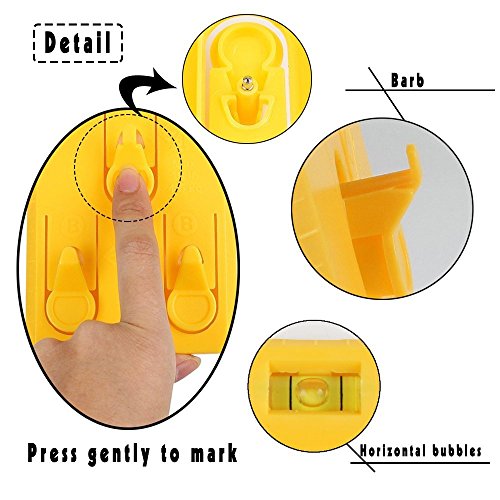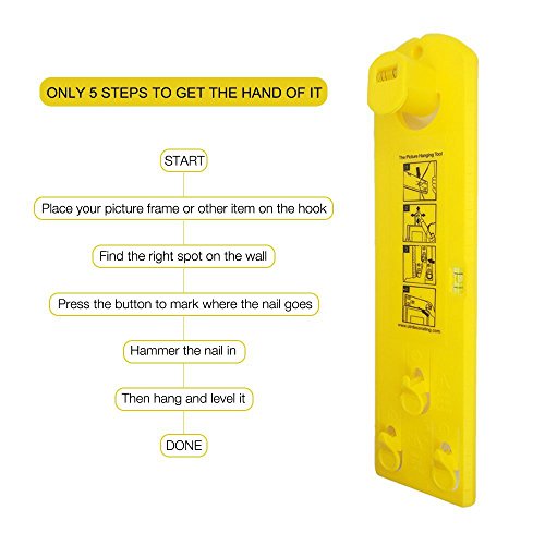 - EASY TO USE. START→ Place your picture frame or other item on the hook→ find the right spot on the wall→ press the button to mark where the nail goes→ hammer the nail in→ then hang and level it→ DONE