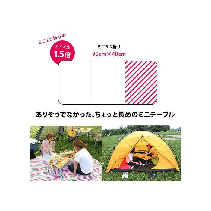 일반적인 미니 테이블 보다 30cm 긴 90cm와이드 그렇지만 수납 사이즈는 그대로.무게는 불과 1.8kg