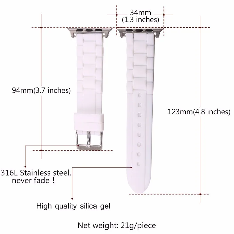 | [해외]실리콘 시계 스트랩 화이트 손목 Applewatch 시리즈 2 및 1 38 미리메터/42 미리메터 시계 밴드 실리콘 스트랩 2016 새로운 시계 벨트 APB2229 |