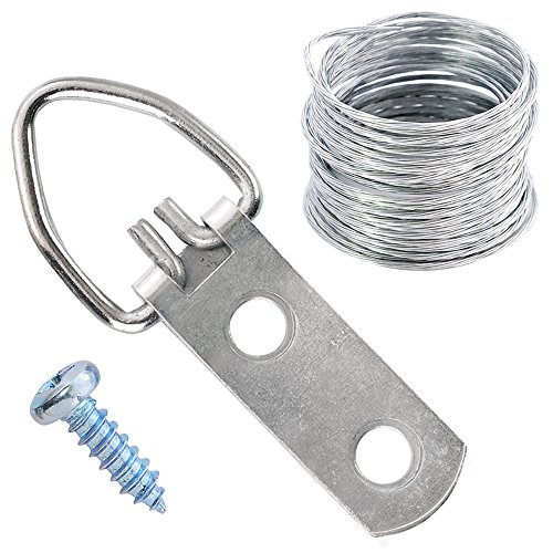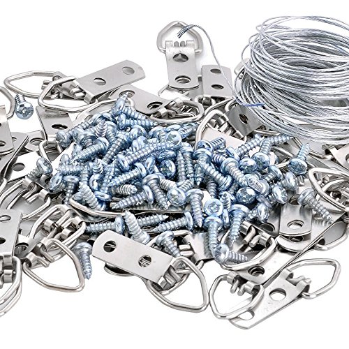 HomeDone D Ring Picture Hangers Large 50-Pack with Screws and 23 Feet Wire