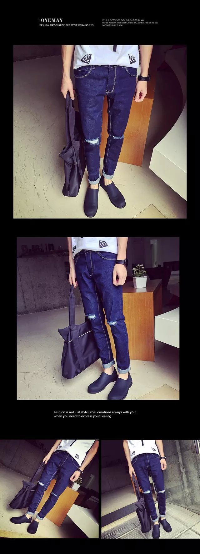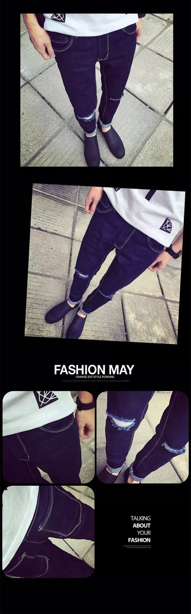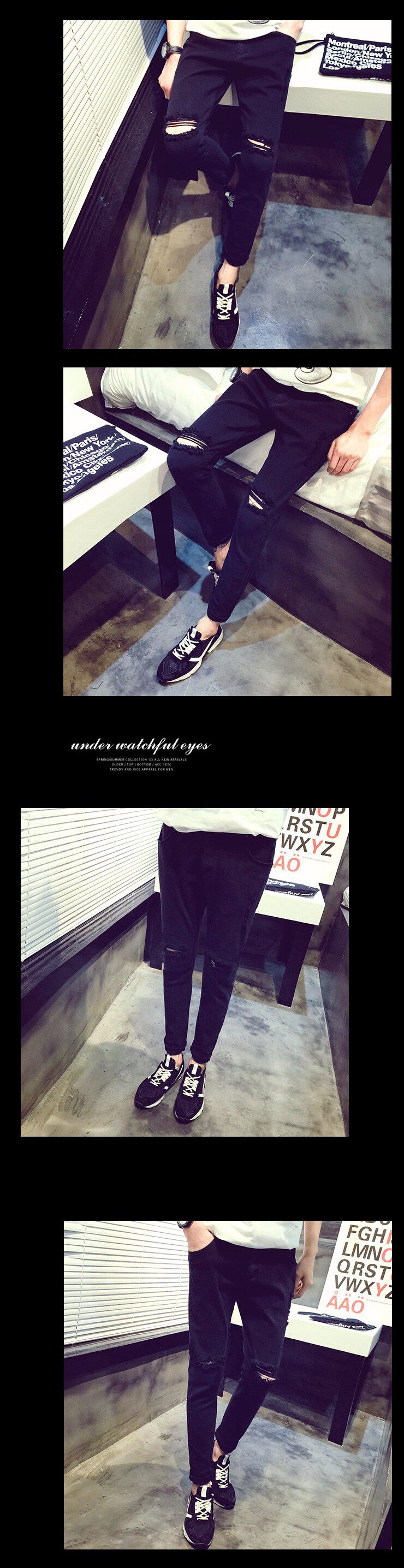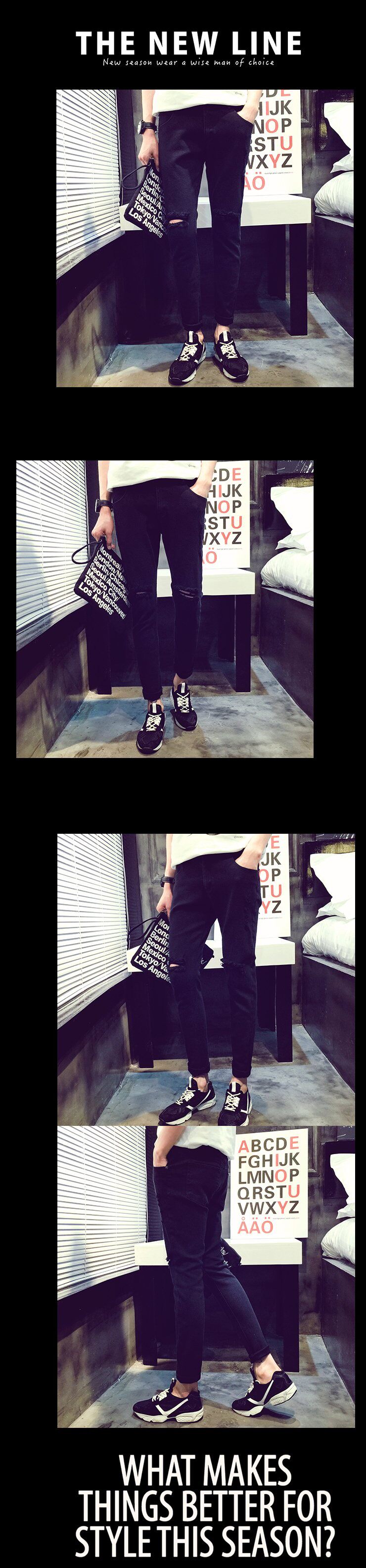 黑色   一字破洞裤
