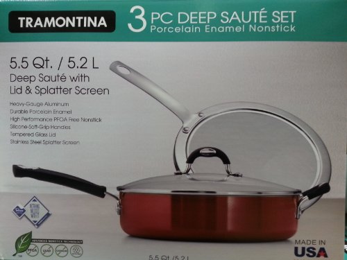 TRAMONTINA 3 PIECE DEEP SAUTE SET W/ LID & SPLATTER SCREEN