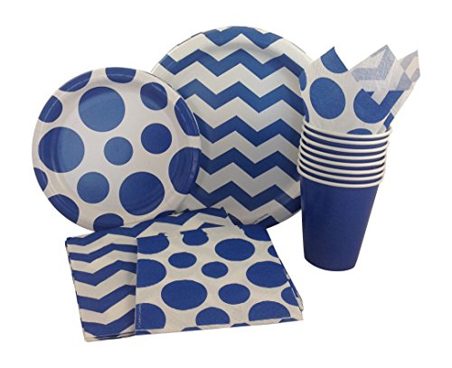 -. Title : Blue & White Chevron Dot Party Supply Pack! Bundle Includes Paper Plates, Napkins, Cups for 8 Guests