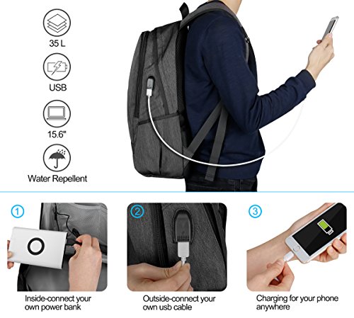 Our Ibagbar Water Resistant Laptop Backpack Bag with USB Charging Port- Reserve now and protect your belongings from water and never run out of battery during travels.