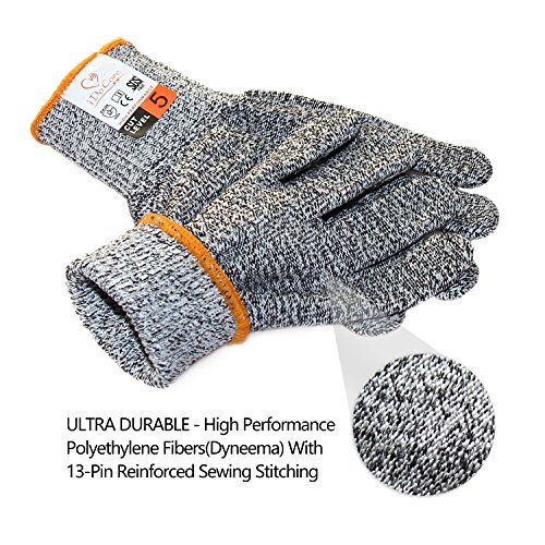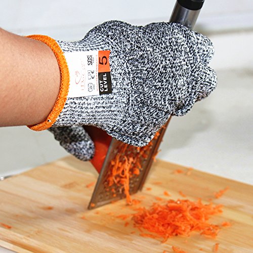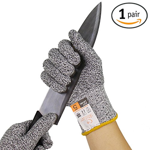 - NO MORE CUT HANDS - iDoCare safety gloves are made of High Performance Polyethylene Fibers(Dyneema), meet the CE Regulatory EN388standard for level 5 cut resistance. Dyneema is the 4X's stronger than leather and more comfortable than stainless steel mesh, provide maximum protection for kitchen prep, repairs, changing blades, sharpening knives, and more.