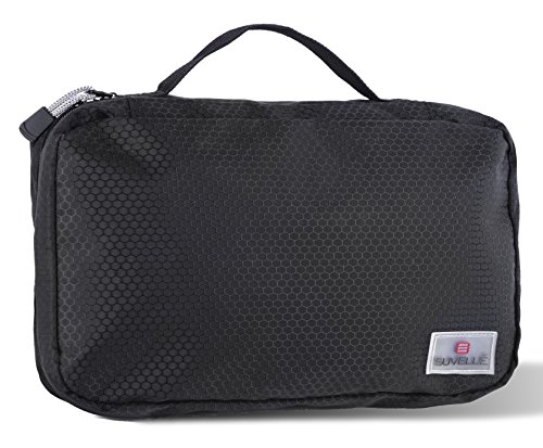 Studio : Suvelle Publisher : Suvelle Product Description Stay organized while traveling with this Suvelle Hanging Toiletry Travel Kit Organizer Cosmetic Bag, it's a spacious on - the go toiletry bag, crafted from water-resistant nylon fabric, ensures long wearing and durability and equipped with roomy interior compartments. The fully lined interior unzips to reveal a tri-fold construction and features a multi-compartment design with three separate packing areas: 2 zippered pockets, 1 mesh pocket and elastic loops that hold bottles upright and in place, while a nonslip hanger on the top makes it easy to hang this kit anywhere. This toiletry cosmetic traveling carry case from Suvelle stashes all your on-the-go essentials without a worry! 0