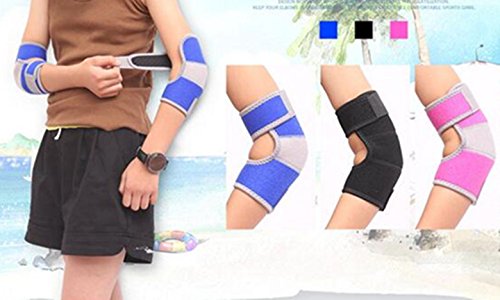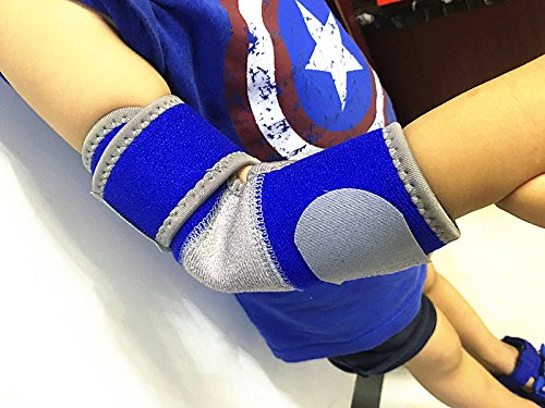 -. Feature : Sports necessities--It is very neccessory to protect your kid's elbow when wear short sleeves in summer. / Adjustable elbow brace fit most children,very effective avoid bruise and sprain when they are in sporting like as:like jogging, running, dancing, football,basketball,volleyball, skating,cycling,sports and more. / Breathable fabric provides soft tissue support without heat retention, holes design inside, accelerate sweat volatile and keep the elbow dry. / Open patella design can be adjustable fits for most of children elbow circumference from 14~24cm(5.5~9.4 inch). / Include extra removeable round protection pad can be strong protect your kid's elbow,the silicone design avoide slippage and discomfort, ensuring a proper fit.