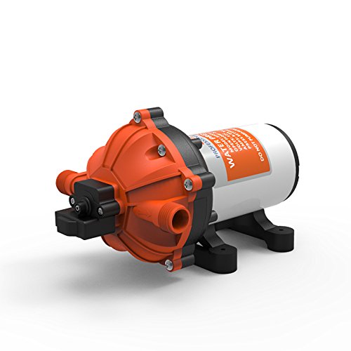 -. Feature : On-demand, automatic water pump for small boats, campers and / Built-in 60 PSI(4.2 BAR) pressure switch for automatic stop/start / Self-P.R.Iming allows it to be mounted above tank; able to run dry / Quiet operation; 1/2"-14 MNPT Ports / 5.5 gallons per minute (20.0 liters per minute); 17.0 Max Amps