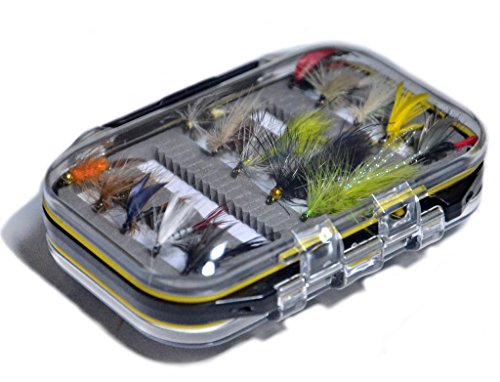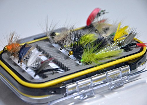 Outdoor Planet Double Side Waterproof Pocketed Fly Box + Assorted Trout Fly Fishing Lure Pack of 15 Fly Lure