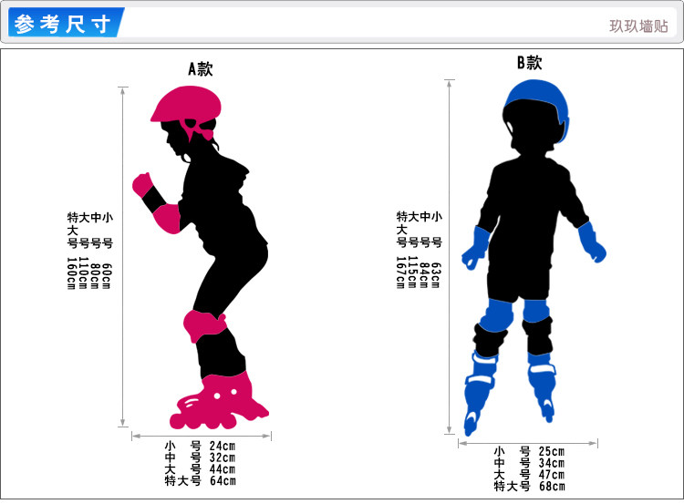 溜冰场旱冰馆滑冰轮滑培训班墙贴小孩溜冰动作体育运动贴纸贴画