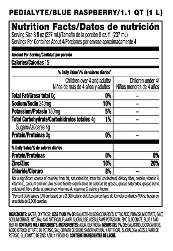 Pedialyte Advance Care Oral Electrolyte Solution, Blue Raspberry, 1-Liter