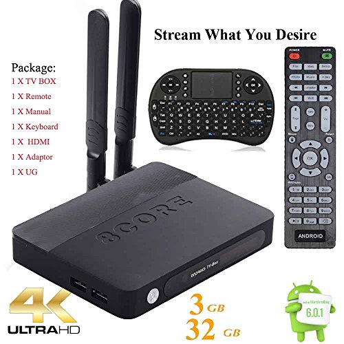 Kukele 2017 Strongest Media Player [S912/3GB+32GB/Octa Core/4K/Antenna/Instruction/Wireless Keyboard] Android 6.0 Marshmallow TV Box
