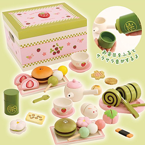 -. Feature : マザーガーデン一番人気のスウィートカフェリボンの和風バージョン。 / 木のおままごとには珍しい和風タイプです。海外のお友達へのプレゼントとしても人気です / 【サイズ】収納木箱:W22cm×D17cm×H13cm・お皿:12×6cm・湯のみ:径6cm×高さ3cm / 【対象年齢】3歳以上 【材質】MDF、天然木、マグネット、ポリレジン、繊維(食品衛生法に準じた安全な塗料を使用しています)抗菌加工。 三色団子は三つに分離できません。串は抜けません / 有料のマザーガーデン袋は 不織布SSサイズは「B00AASLUGA」で検索してください。 紙袋は「B01LWM4UL8」で検索してください。